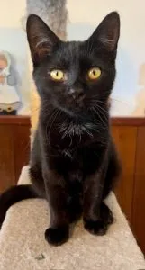 Meet Snowball– an adorable black velvety 3 1/2 month old kitten with a big personality!